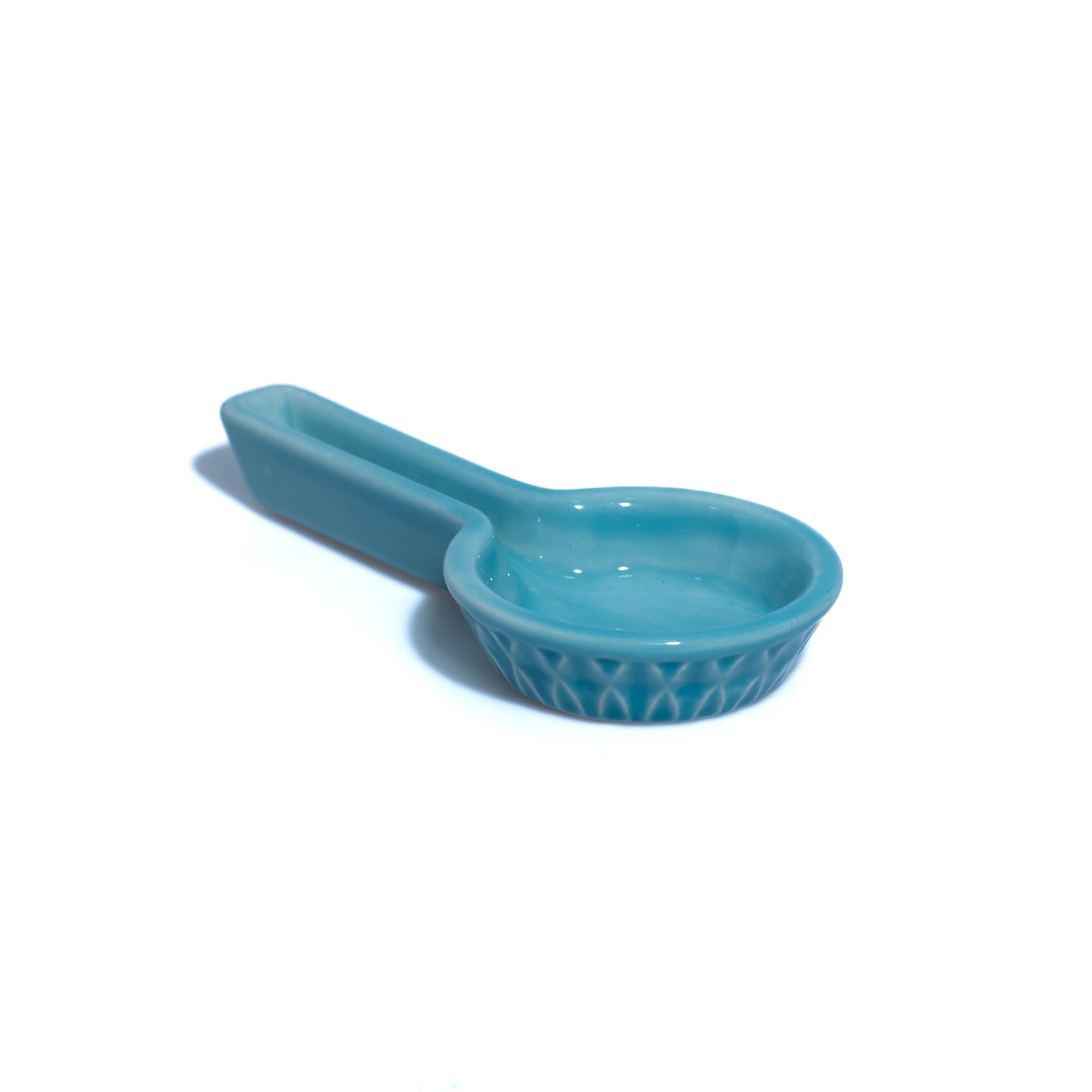 Cerámica esmaltada en color celeste, resistente y fácil de limpiar.