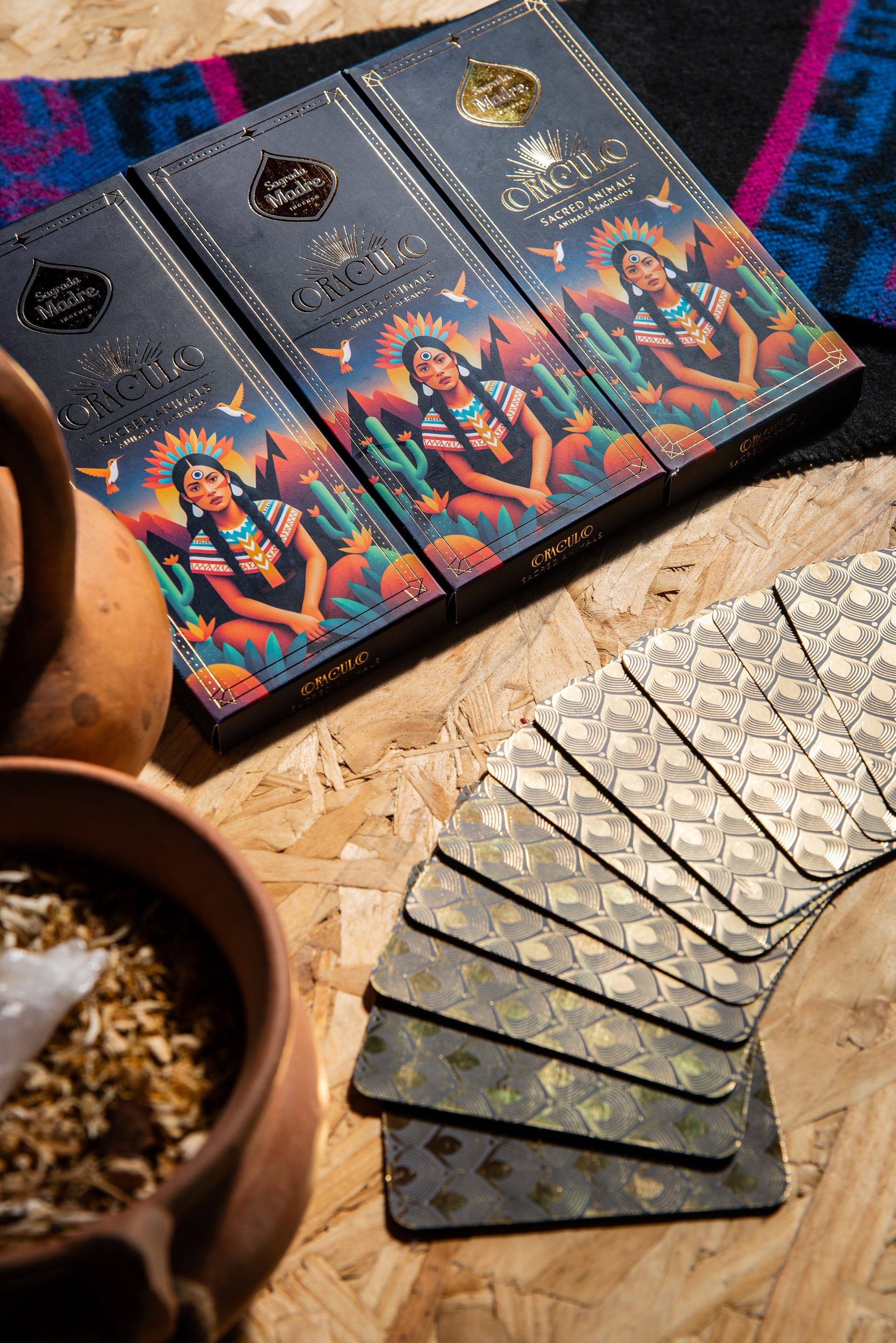 Un oráculo sensorial que conecta con la sabiduría ancestral de la naturaleza. Cada caja incluye 8 varillas aromáticas y 1 carta oráculo sorpresa (de una colección de 12), con mensajes y enseñanzas que llegan en el momento justo para acompañar tu camino espiritual.
